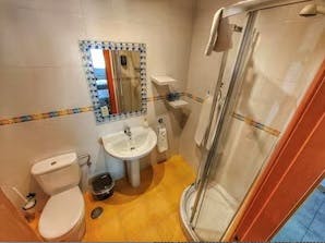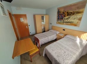 La habitación doble dispone de dos camas individuales, armario, mesita, escritorio, silla, calefacción, TV plana y baño completo.